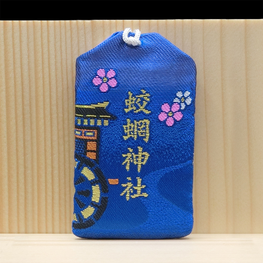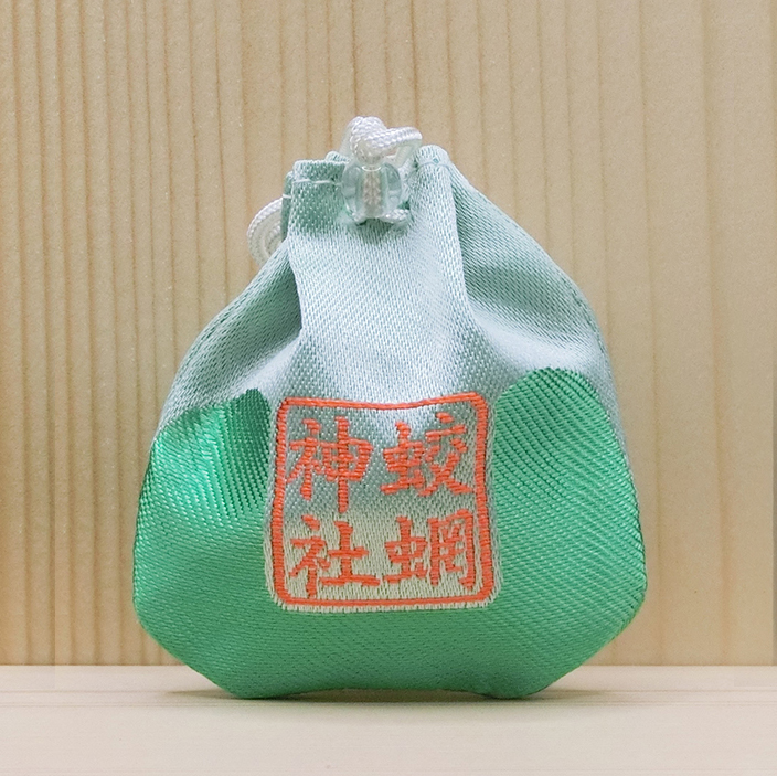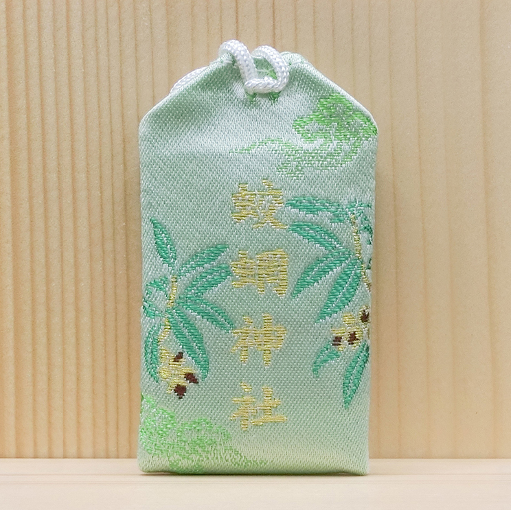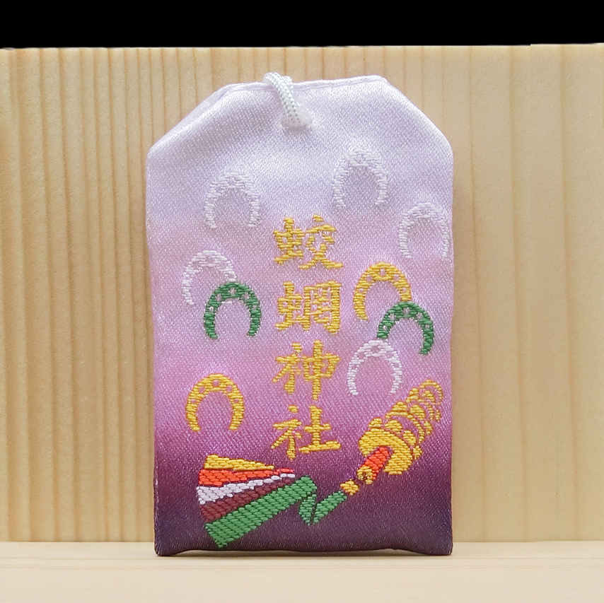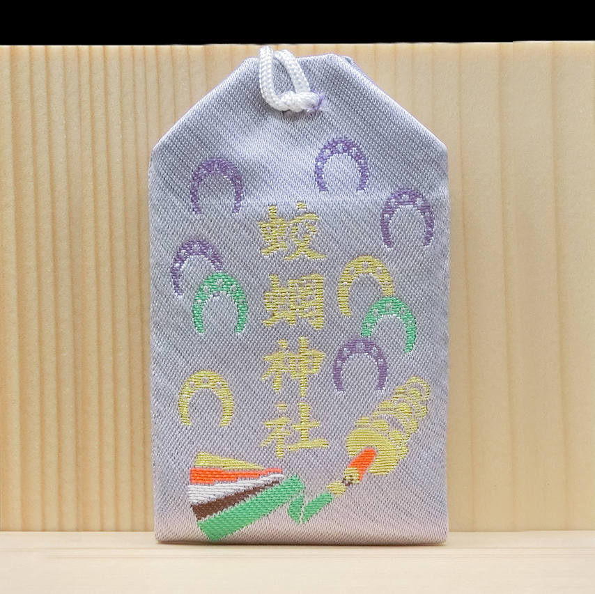 蛟蝄神社は水の女神様「罔象女大神(みつはのめのおおかみ)」を主祭神としてお祀りしております。難読な社名とお祀りしている神様を知っていただきたいと思いデザインしました。十二単の装束1枚1枚重ねるように、経験や努力を重ね輝けるようにと願いを込めた御守です。