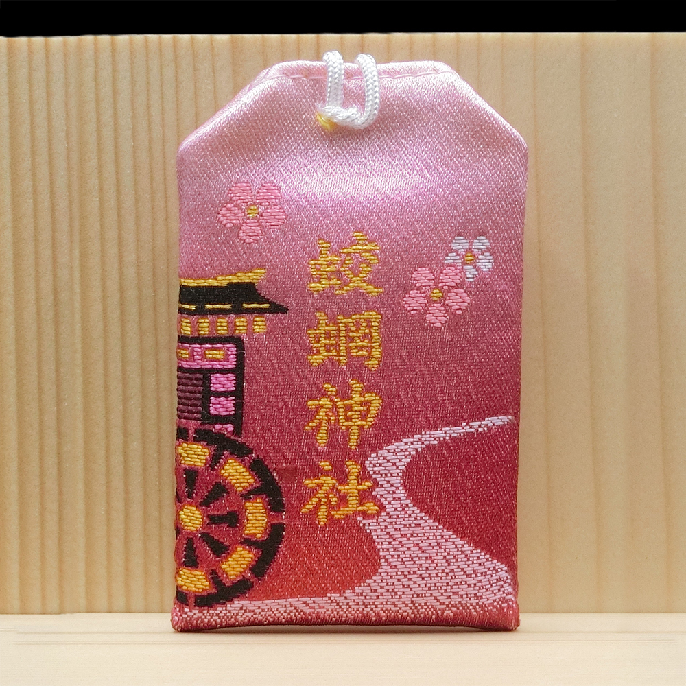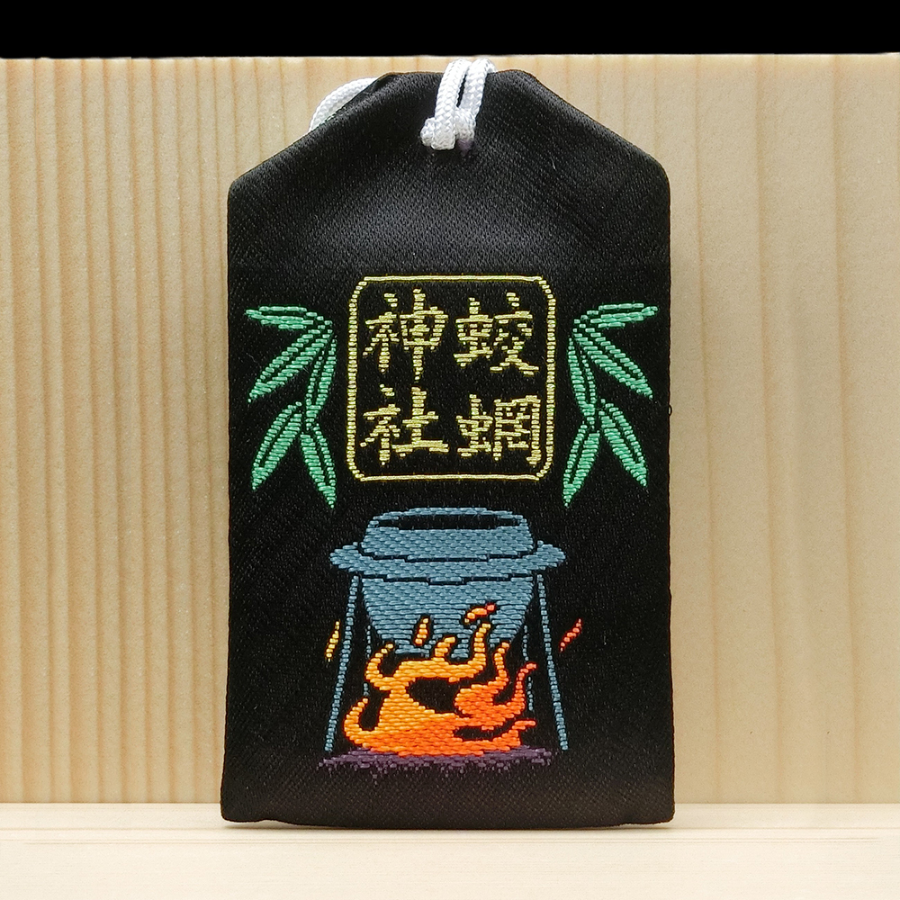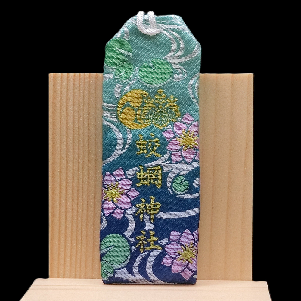 蛟蝄神社は水の女神様「罔象女大神(みつはのめのおおかみ)」を主祭神としてお祀りしております。難読な社名とお祀りしている神様を知っていただきたいと思いデザインしました。十二単の装束1枚1枚重ねるように、経験や努力を重ね輝けるようにと願いを込めた御守です。