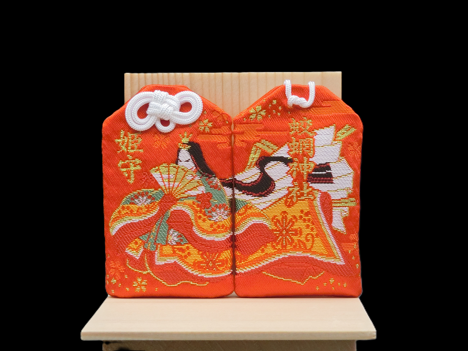 厄災除守は、黒色の生地・桃・麻の葉文様をデザインしました。黒色は邪気を祓う魔除けの意味合いがあり、桃は古来、魔除け・厄災除けの果物と言われており、古事記や日本書紀でも魔物を追い払ったと言われております。麻の葉文様は六角形や三角形を組み合わせた「幾何学文様(きかがくもんよう)」で強い魔除けの力があると考えられています。