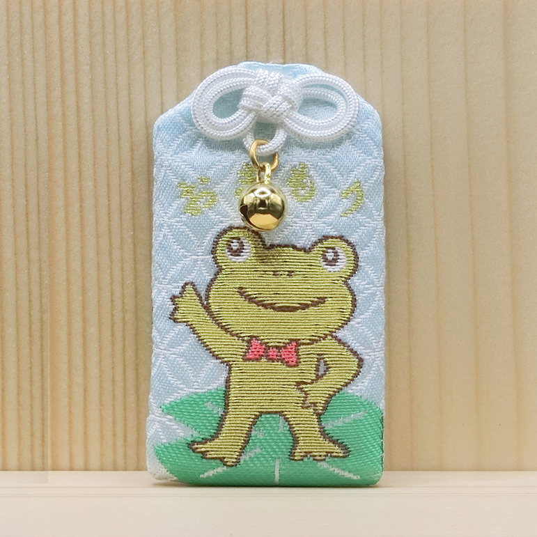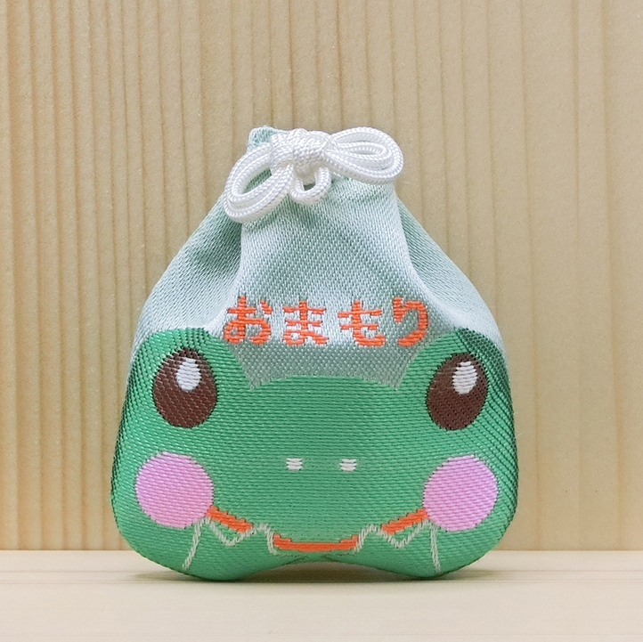 神社周辺にはたくさんの田んぼがあり、田植えが終わり6月頃にはかえるの大合唱でにぎやかになります。「無事かえる「(交通安全)」「考える(学業)」「成長(子供から大人に成長)」「若がえる(いつまでも若々しく!)」等、持つ方によって願い事がかわる御守です。鼻の所を押すと……ちょっとびっくりします。