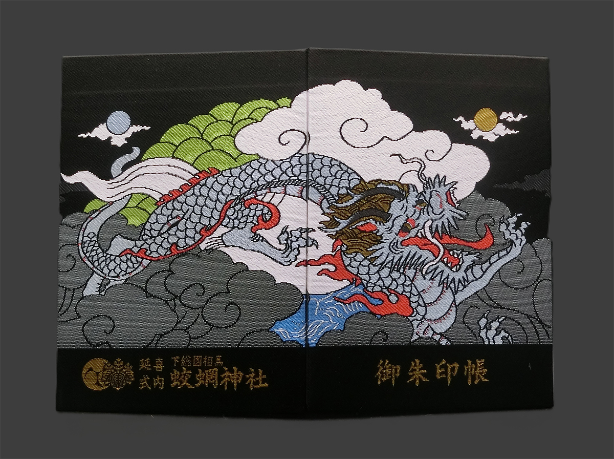 奥の宮御社殿の天井画 藤田飛鳥 作「白龍図」をもとに御朱印帳の図柄にいたしました。