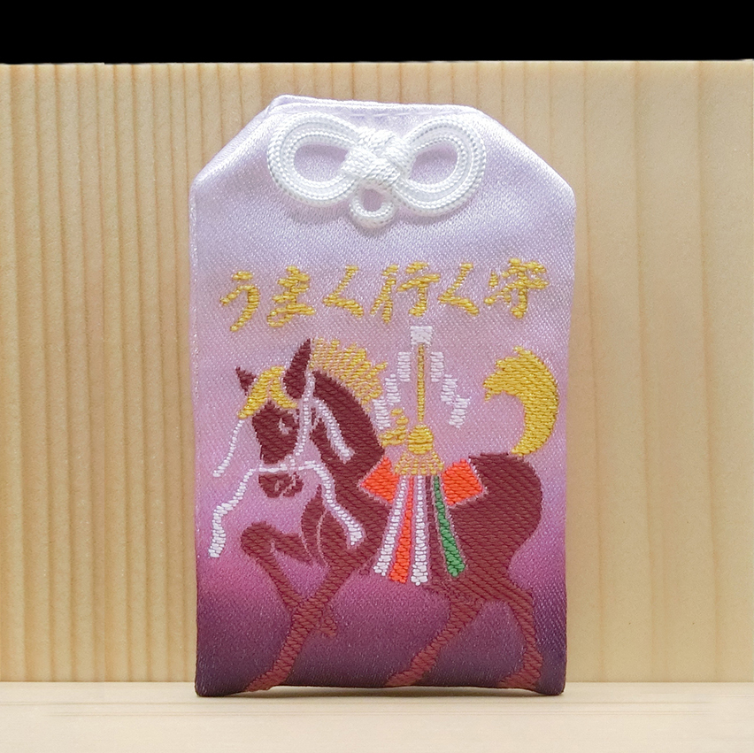 馬がゆっくり歩くようにゆとりをもって交通ルールを守り、譲り合いの心を持って安全への意識を高め行動出来るようにと願いを込めた御守です。